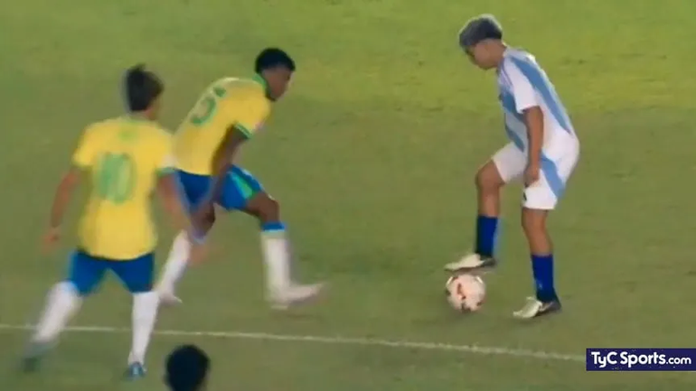 El jugador en cuestión es Felipe Esquivel, el pibe que brilla en el Sudamericano Sub 15 que se disputa en Santa Cruz de la Sierra y le marcó a Brasil un golazo que abrió el marcador en la última fecha de la fase de grupos.