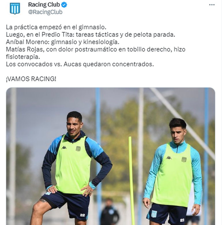 Rojas, no obstante será evaluado y esperado por el cuerpo técnico hasta último momento, y en caso que no llegue en correctas condiciones su lugar será ocupado por Nicolás Oroz o Nicolás Reniero.
