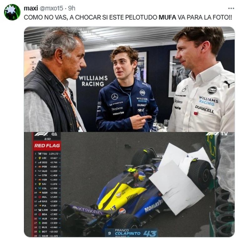 Luego de esos encuentro, llegarían la clasificación y la carrera en San Pablo, que representaron la peor performance de Colapinto en las seis carreras que lleva en la Fórmula 1. El argentino se pegó un fuerte palo en la previa, que se pospuso de sábado a domingo por las lluvias, y luego volvió a sufrir un accidente en la carrera que lo obligó a abandonar antes de tiempo.