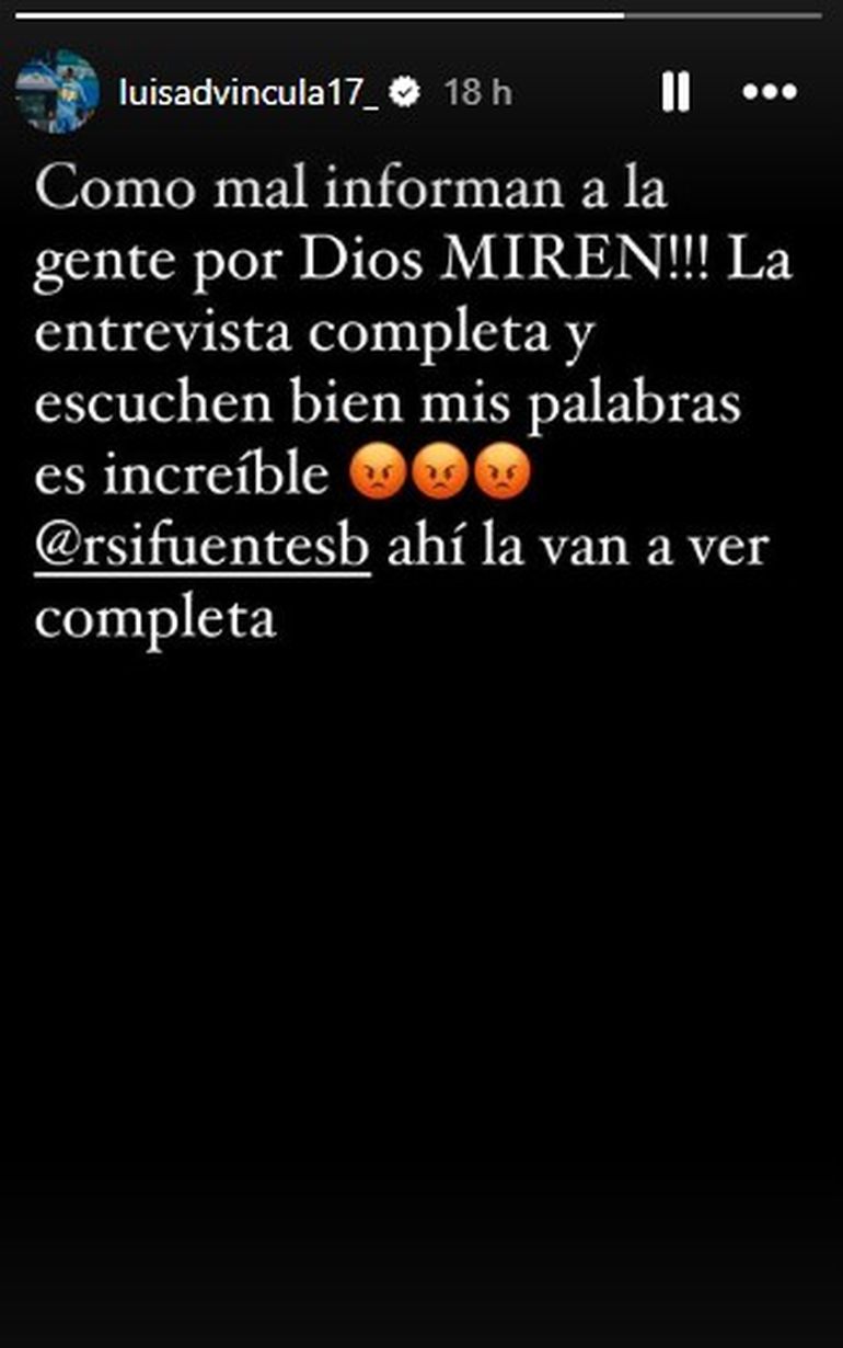 "Cómo mal informan a la gente, por Dios! Miren la entrevista completa y escuchen bien mis palabras, es increíble!!!", escribió Luisito en una historia publicada en su cuenta personal de Instagram.