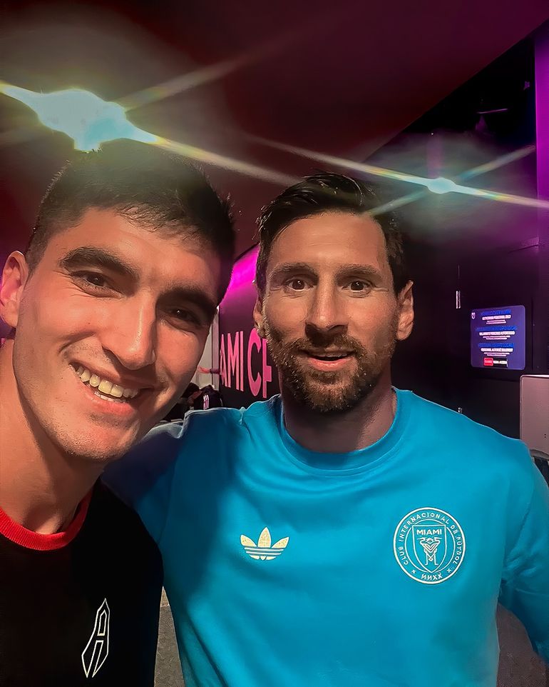"Hoy le agradezco a la pelota: gracias por dejarme vivir momentos inolvidables y conocer a mi idolo y el mejor jugador del mundo, por vivir estos momentos con mi familia y mis amigos de siempre. A seguir mejorando para lo que viene", expresó el zurdo sobre el encuentro con el capitán de la selección argentina campeona del mundo y bicampeona de América.