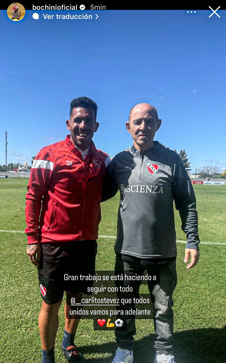Este martes, a través de sus redes sociales, Tevez recibió el apoyo del máximo ídolo en la historia del Rojo. Ricardo Enrique Bochini escribió: "Gran trabajo se está haciendo, a seguir con todo Carlitos Tevez, que todos unidos vamos para adelante".