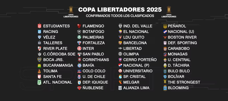 Se confirmaron todos los equipos clasificados para la Copa Libertadores y la Copa Sudamericana 2025. El elenco argentino tiene una amplia participación en ambos torneos.