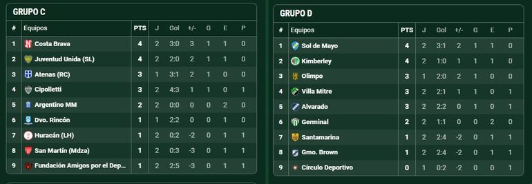 Alvarado logró su primera victoria al superar 2-0 a Guillermo Brown de Puerto Madryn, Villa Mitre hizo lo propio ante Círculo Deportivo de Nicanor Otamendi en Bahía Blanca y hubo empate sin goles en Rawson entre Germinal y Kimberley.