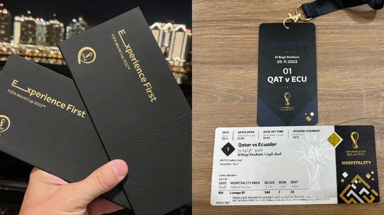 Las entradas son negras con letras doradas e invitan a disfrutar de un espacio único durante el evento. En el paquete están incluidos regalos como una pashmina y un muñeco de la mascota del Mundial.