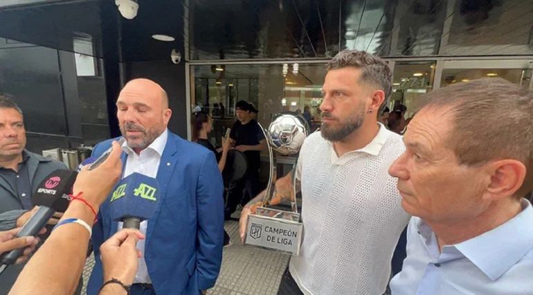 La imagen de los jugadores, el técnico y el presidente salieron de las oficinas de AFA con un trofeo pinta de cuerpo entero la decisión.