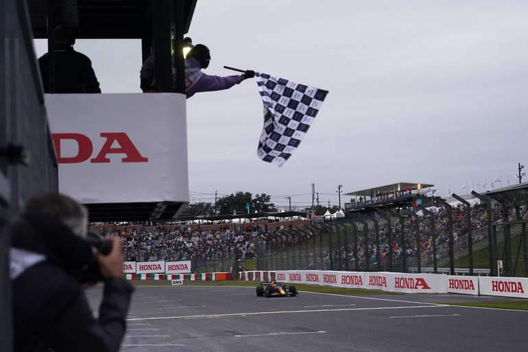 El neerlandés Max Verstappen salió campeón del mundo de Fórmula 1 tras una penalización a su rival monegasco Charles Leclerc (Ferrari) poco después del final del Gran Premio de Japón, disputado en el circuito de Suzuka, que estuvo interrumpido alrededor de dos horas por la lluvia.