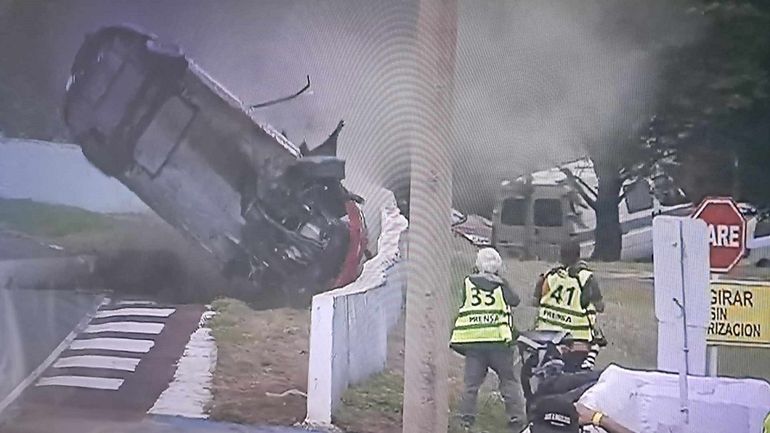 El piloto dejó el auto por sus propios medios y caminando con normalidad, pero con gestos de lamento, agarrándose la cabeza, ya que su auto llegó con lo justo porque fue preparado en Bahía Blanca, en medio de las dificultades que implica el temporal que afectó esa zona del país.