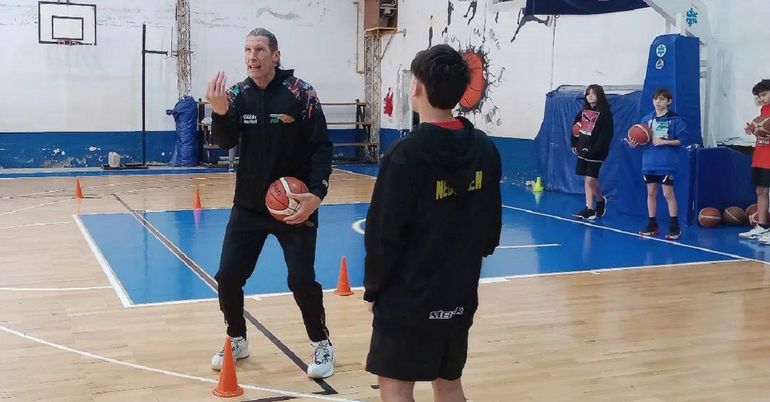 El integrante de la Generación Dorada estuvo dando su campus para jóvenes en la ciudad neuquina durante el fin de semana y despuntó el vicio junto a exjugadores de la región.