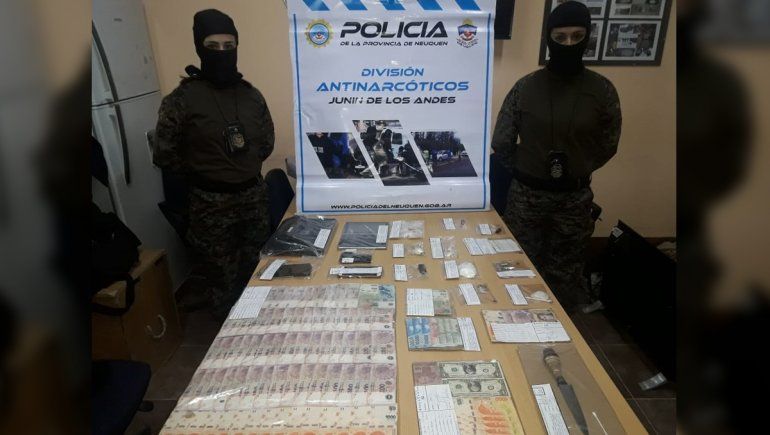 Detallaron que se secuestró "una importante suma de dinero en moneda de baja nominación, estupefacientes, elementos de corte y estiramiento, soportes digitales". Por el momento no se precisó el monto de dinero ni de droga hallada. Además, secuestraron dos vehículos, uno de ellos de alta gama, y procedieron a la demora de un hombre, señalado como el principal investigado, quien fue puesto a disposición de la Justicia federal, con asientos en Zapala.