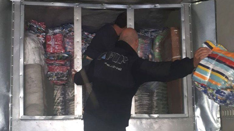 Al retirar los paneles, se encontraron 46 mil piezas de indumentaria sin declarar, compuestas por medias, shorts, pantalones, blusas, trajes de baño, carteras, ropa interior y polleras.