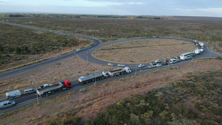 Tal como puede advertirse en las imágenes del dron de LM Neuquén tomadas este jueves a primera hora, la fila de vehículos es extensísima.