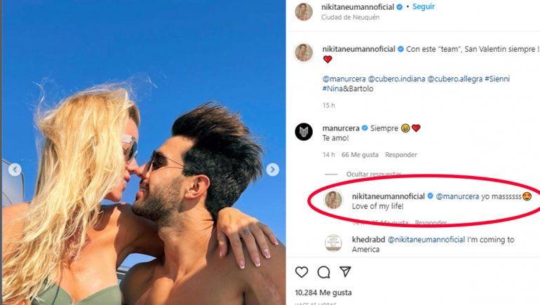 Sin embargo, también tuvo tiempo para el romanticismo y compartió fotos de ella y su novio muy juntos. En ese punto, Manu, con mucha complicidad, respondió el posteo de la modelo. “Siempre. Te amo!”, comentó.