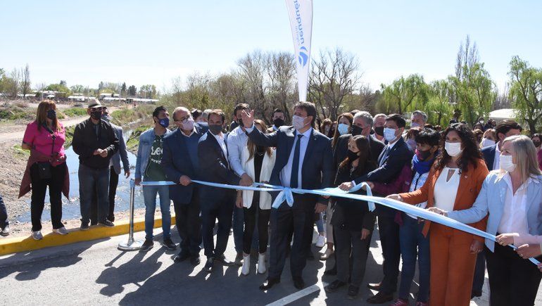 Luego procedieron al corte de cinta que se realizó sobre el puente que se encuentra a la altura de la laguna Paimún. De esta tarea no solo participaron los funcionarios, sino también los vecinos. Allí, el intendente dio algunas palabras y celebró estar llegando a la confluencia de los ríos con una obra transformadora: “Hoy estamos inaugurando este mirador y cumpliendo un compromiso que habíamos asumido y que estamos a tan poco de hacerlo realidad: En poco tiempo vamos a encontrarnos en ese abrazo fraterno de los ríos Neuquén y Limay”.