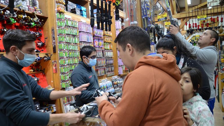 Una tienda que celebra la llegada del Día del Padre es la abocada a caza y pesca de Ferracioli. "Es una fecha en la que más se vende. Hoy está más tranquilo que lo normal, calculo que porque es miércoles, pero acercándose al sábado se vende mucho más. Por lo general vendemos cuchillos, termos, mate y, si cuentan con más dinero, compran equipos de pesca más caro. Igualmente a diferencia de otros años vienen más tranquilo. La gente se cuidan en los gastos. Normalmente se están gastando entre 4 mil y 5 mil pesos", contó Fernando.