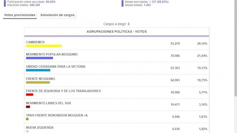 El candidato del espacio que lidera Mauricio Macri a nivel nacional consiguió una banca para la cámara baja, mientras que Alma "Chani" Sapag del MPN y Darío Martínez de Unidad Ciudada, se quedaron con los otros dos escaños.
