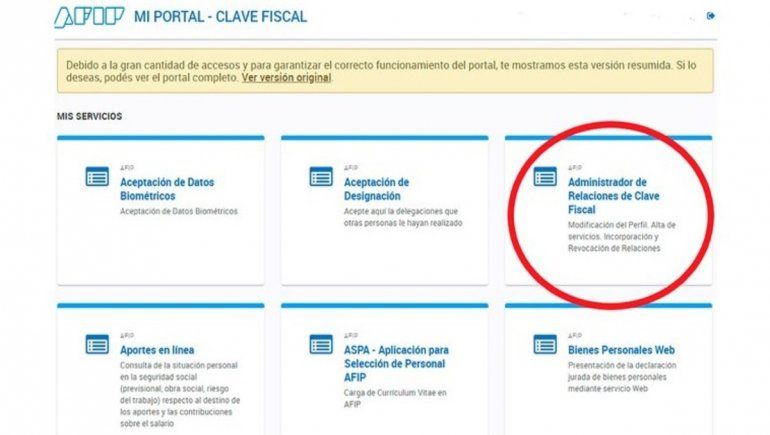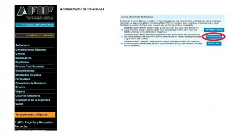 Los contribuyentes que tengan ese nivel de clave, deberán ingresar a su cuenta –se requiere número de CUIL y clave fiscal– y seleccionar la alternativa “Administrador de relaciones de clave fiscal”.