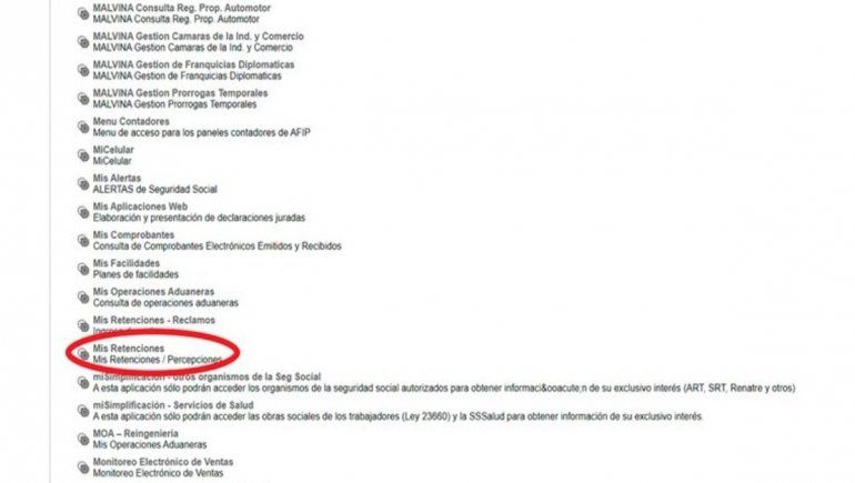 En esa instancia, el sistema ofrecerá un listado con el logo de AFIP y la alternativa “Servicios administrativos”. Allí se deberá optar por la opción “Mis retenciones” dentro de la cual se debe confirmar que adhiere a la relación.
