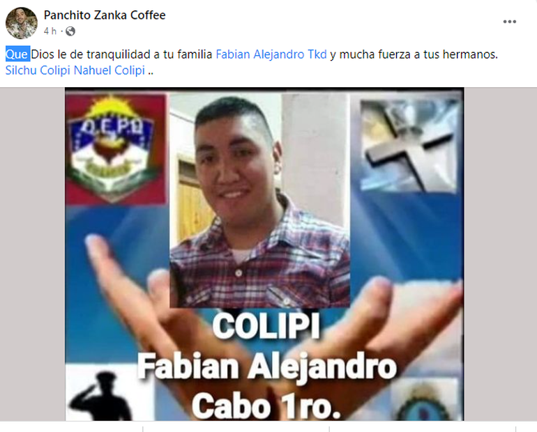 Desde la institución policial, camaradas y amigos expresaron sus condolencias para acompañar a familiares y amigos ante la "irreparable pérdida" de Fabián Colipi. Elevaron también "una plegaria para que encuentren la fortaleza que les permita sobreponerse a tanto dolor y congoja".