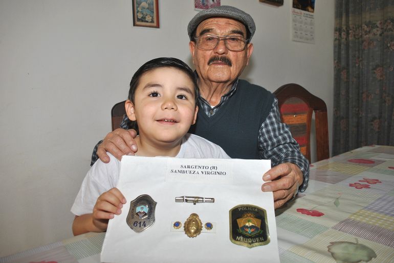 Augusto, su nieto de 4 años, convive con él. “El es el malcriado y el más chiquitito de toda mi gran familia”, contó mientras mostraban los elementos de servicio que utilizada en la época de su trabajo como funcionario policial: silbato metálico de rondín, escudo policial, grado jerárquico e insignias para uniforme y gorra.