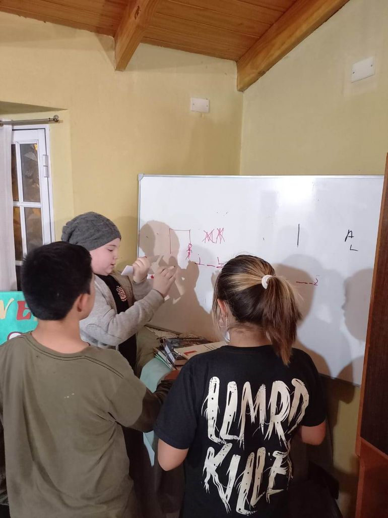 Es ese lugar el que cumplirá la función de albergue para las mujeres, pero mientras avanza el proyecto, doña Anita analiza en caso de terminarse esta parte de la obra comenzar a dar la Catequesis, ya que las clases para unos 14 chicos las da en su domicilio particular. A estas clases asisten una veintena de niños y niñas de entre 4 y 12 años de edad que tienen todas las ganas de salir adelante. “Hace varios años que vivo en el barrio Islas Malvinas cuando vinimos no había mucha gente pero ahora ha aumentado la cantidad de familias y todas muy jóvenes con niños menores y ahí nació esa necesidad de poder enseñarles religión y abrí mi casa y mi comedor como salón. Ocupamos mis mesas y un pizarrón que pudimos comprar y así empezamos con la catequesis todos los sábados de 16 a 20. Al final compartimos una merienda”, relató.