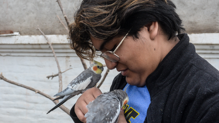 Isaías un vecino del barrio Cumelén vive horas de desesperación. El joven que desde pequeño aprendió a comunicarse y convivir con las aves, ofreciéndole un contexto de libertad, perdió hace unos días a dos integrantes de su familia. Se trata de Nube y Rio, una periquita australiana y una especie de loro barranquero con los cuales construyó un vínculo entrañable.