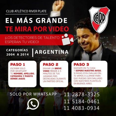 Pues bien, se sabe que en tiempos de pandemia las pruebas de inferiores de la entidad de Núñez se realizan de manera virtual, o sea vía chat en una ingeniosa modalidad. Los chicos tienen que enviar un video por whatsapp ante la imposibilidad de mostrarse en vivo y los captadores de River analizan el material.
