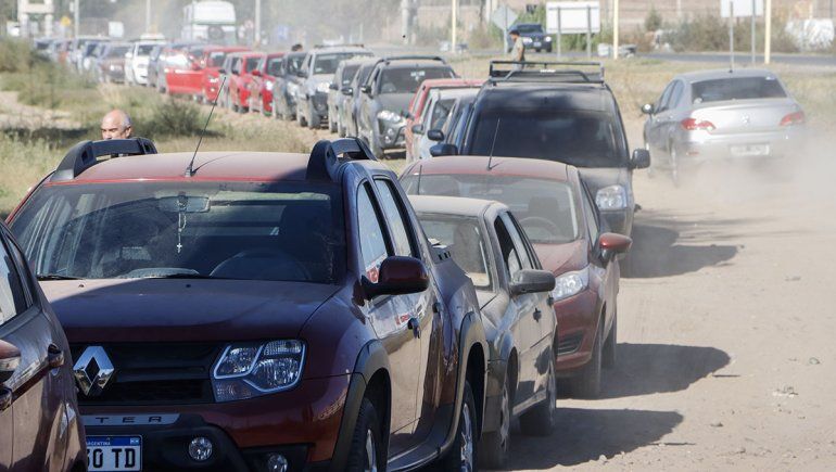 El acceso a Cipolletti por Marino Moreno colapsó de vehículo. Desde temprano esa calle quedó llena de autos, hasta topar con la Ruta 151. Pero cerca del mediodía la fila se extendió aún más.