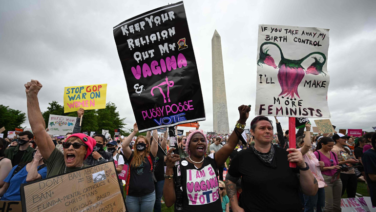 Al llegar a la sede de la Corte, los manifestantes corearon al unísono “¡Mantén tu teología fuera de mi biología!” antes de dispersarse.