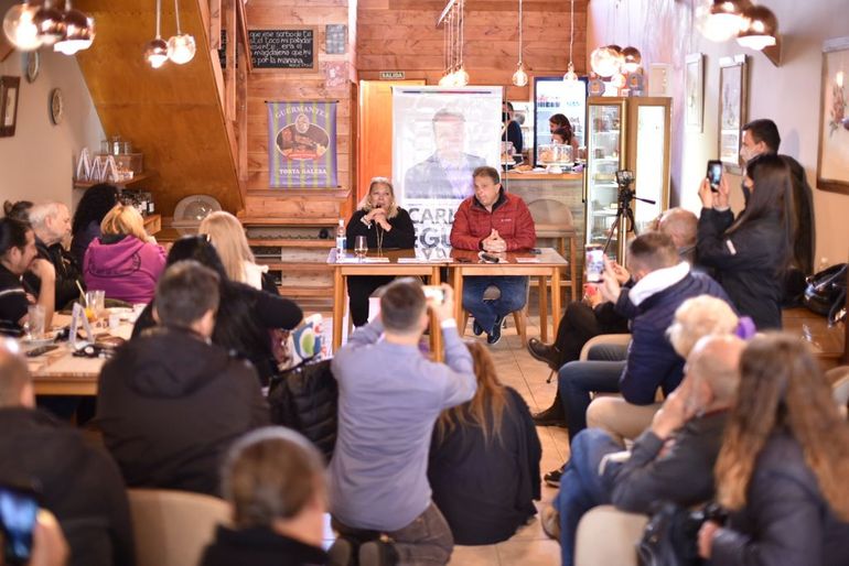 El candidato a diputado nacional por Neuquén, Carlos Eguía, mantuvo este martes un encuentro con vecinos y comerciantes de Villa la Angostura junto a la líder de la Coalición Cívica ARI, Elisa "Lilita" Carrió, quien desde el fin de semana llegó a la provincia a acompañar y a apoyar al candidato local.