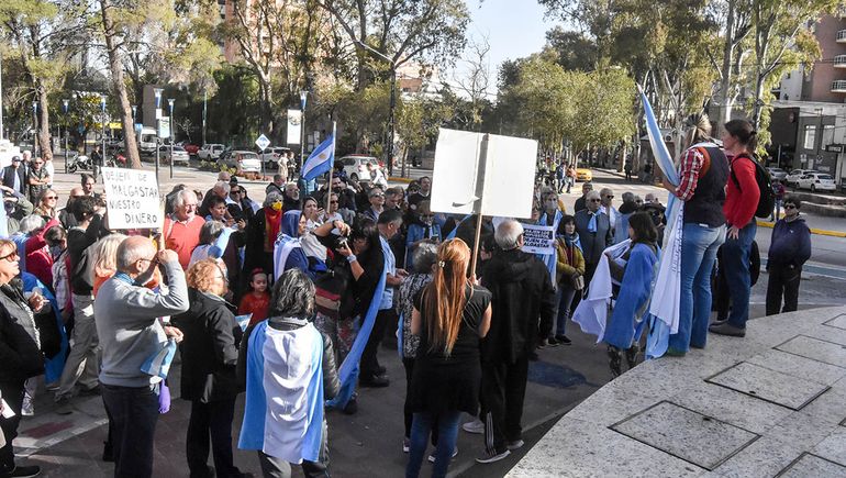 Las banderas argentinas también dijeron presente en la movilización realizada en el centro neuquino. Entre otros referentes políticos de la oposición estaban los concejales de Juntos por el Cambio, Marcelo Bermúdez y Denisse Stillger, y el ex diputado nacional David Schlereth, quienes se manifestaron en sus redes por la movida del #23A.