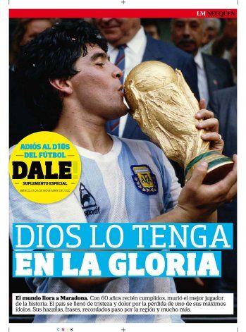 Pero atento a la circunstancia especial, LM Neuquén ofrecerá en su edición de este jueves un suplemento especial del ídolo que acaba de partir para siempre, si bien su legado será eterno.