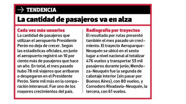 Por el aeropuerto de Neuquén en junio pasó un 10% más de gente