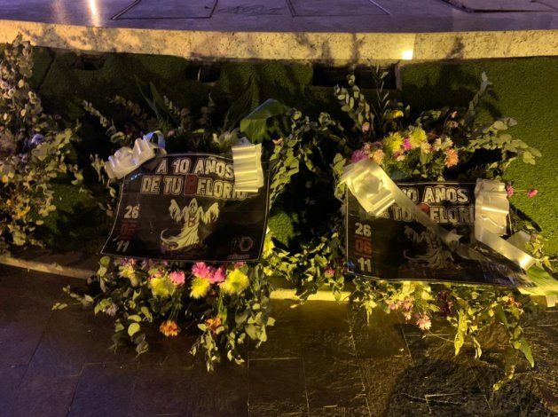 Y también se divisaron afiches en distintos puntos con un fondo negro de luto, la banda roja y la inscripción: "10 años. RiBer, esa mancha no se borra nunca más".