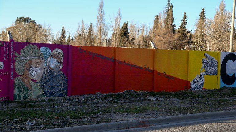 Un nuevo homenaje a las y los trabajadores de salud realizaron seis artistas plásticas neuquinas en uno de los muros de la ciudad. Las imágenes presentan a trabajadores de salud y unas manos con una jeringa (que simboliza la vacunación contra el COVID) y fueron elaboradas por las integrantes de la Colectiva de Mujeres Muralistas (COMUM) de Neuquén.