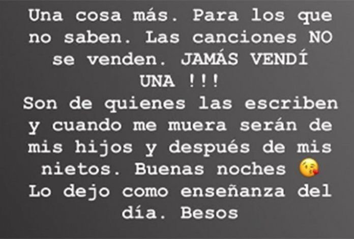 Y agregó: “La situación en Venezuela es muy delicada. No siento legítimo ningún bando la verdad. Ojalá haya elecciones pronto para que la gente pueda votar libremente y poder elegir. Que se vaya Maduro pero que no entre (Donald) Trump con sus amigos. Por eso no estoy de acuerdo con que hayan usado hoy mi canción”.