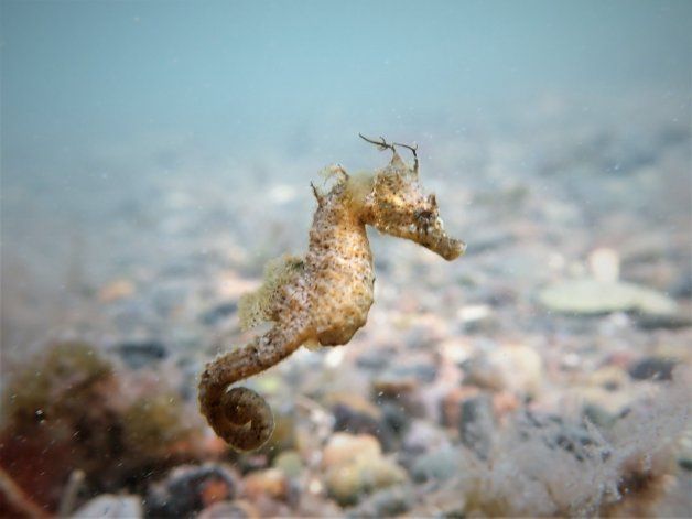 El especialista también explicó que al Caballito de Mar se lo puede encontrar durante las mareas bajas cuando el agua llega a los tobillos, en cambio en otros lugares del norte se los encuentra a unos 20 o 30 metros de profundidad. La distribución territorial es desde la Bahía de San Antonio hasta Río de Janeiro, y las principales características físicas es que tienen la cabeza a 90° respecto del cuerpo, y la cola es una modificación de la aleta caudal de los peces comunes, con la que se sujeta a los sustratos.