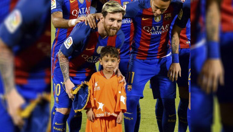 El pequeño conoció a Messi, estuvo con él en el campo de juego, se sacó fotos con su ídolo, se llevó una camiseta de Barcelona y abrazó fuertemente las piernas de su admirada estrella del fútbol.