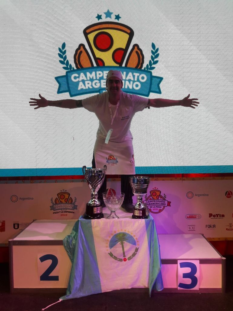 “Algo complejo fue lograr y organizar las combinaciones de productos. Yo traje productos muy locales de la zona de Chacras de Centenario, los quesos de Mauricio Couly, elegí lo mejor para poder estar a la altura del nivel. Competí en la categoría pizza a la piedra, pizza sin gluten, pizza al molde, pizza italiana, pizza vegana, la masa más larga”, cuenta Cristian Abarzua, quien logró el primer puesto en la categoría pizza Sin Gluten además de su coronación como campeón argentino.