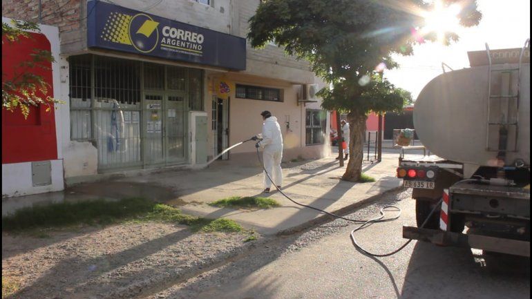 El intendente Leandro Bertoya explicó a LM Neuquén que durante la mañana de este lunes se realizó una desinfección de calles y veredas con agua y cloro, y también se llevaron a cabo tareas de limpiezas en las dependencias policiales, de bomberos y el hospital.