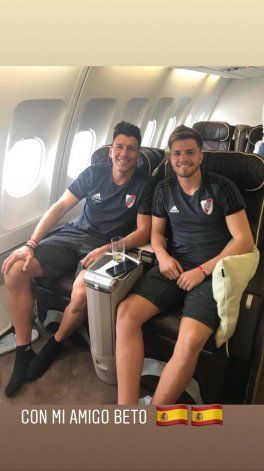 Tras el anuncio por parte del cuerpo técnico de River de la lista de convocados que viajaron a España, el arquero compartió una foto con Enrique Bologna en su cuenta de instagram en el vuelo que los traslado hasta Madrid donde el Millonario se alojará.