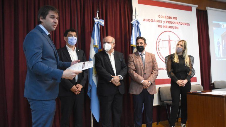 “Hoy se entregaron los diplomas a los árbitros y árbitras del tribunal de arbitraje general del Colegio de Abogados y Procuradores del Neuquén. Es un tribunal donde se tramitan problemas entre empresas, o simplemente entre particulares de contenido exclusivamente patrimonial y que resuelvan conflictos o controversias de particulares”, explicó Iñiguez.