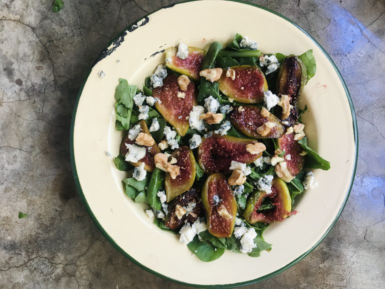 Ensalada de higos, queso azul y rúcula