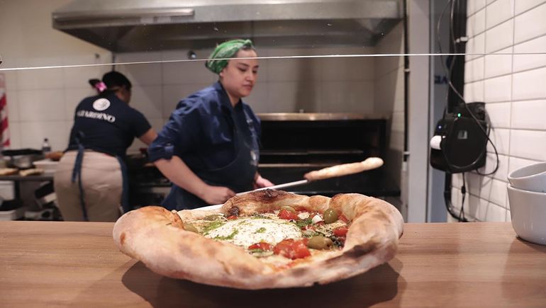 Al mediodía, el menú ejecutivo ($15.000), disponible de lunes a viernes, incluye plato principal, bebida y postre o café, ideal para una pausa rápida y completa. Entre los destacados de la carta regular está el risotto de calabaza asada y panceta crocante ($16.000), las focaccias rellenas de autor como la Mediterránea (jamón crudo, burrata y cherries asados, $25.000) o la Patagónica (trucha gravlax, burrata y cebolla encurtida, $28.000), y una selección de pizzas que van desde la clásica Margarita ($18.000) hasta combinaciones más audaces como la Calabresa con longaniza y olivas ($26.000) o la de peperoni con miel picante ($23.000).