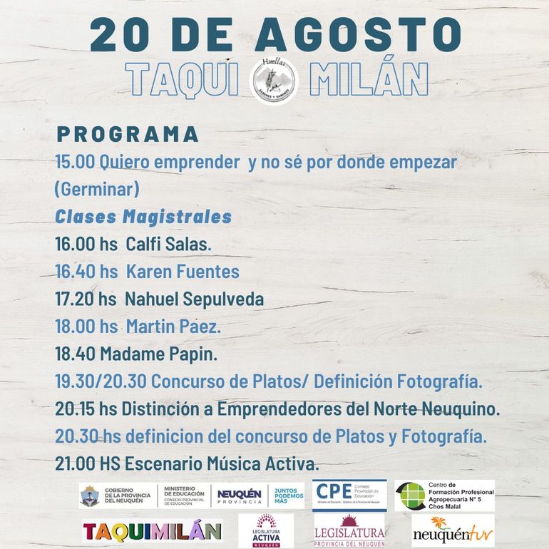 El evento se desarrolla con el apoyo de las municipalidades del norte neuquino, en esta ocasión Taquimilán, la Legislatura del Neuquén y el Ministerio de Turismo mediante Neuquentur.