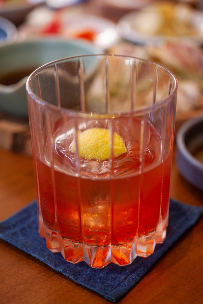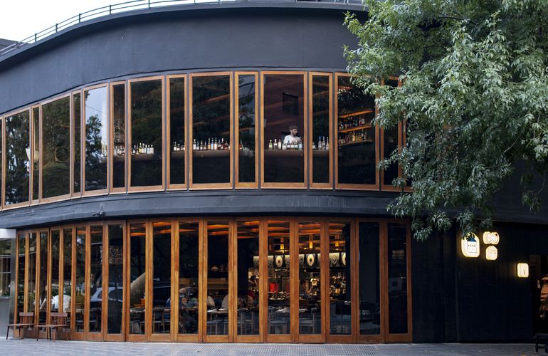 El segundo piso es un pasadizo a otro mundo dentro de este. Una barra semicircular en el salón, mesitas y luces bajas. Camareros afiladísimos. Como en muchos bares de Japón la arquitectura está en altura, esta planta alta emula y despierta esa sensación por donde ver a través de esos hermosos ventanales. ¿Qué decir de la coctelería?. Tiene el corazón de Inés De Los Santos y su fiel ladero Lucas Rothschild, simbiosis perfecta para el disfrute líquido. Inés es una hechicera de otros tiempos en este. Esa noche se acercó y nos contó que tallar el hielo en la cultura japo es algo muy considerado sobre todo en la coctelería. El hielo es el sello que congela la distancia con tierras niponas. Aquí y ahora es sumergirse en esa carta de tragos excelentes que tiene cosas de alcohol moderado como “Llegué a Tokio vía Roma”, que sale con una ramita de orégano y tomate y otras que encienden el fuego. Particularmente volé con un Ash, una variante del dry Martini con Gin, schochu (bebida japonesa), vermú infusionado con sésamo tostado y un pickle de bambú, cargadito. Hay muchos más aperitivos, whiskies y sakes, obviamente.