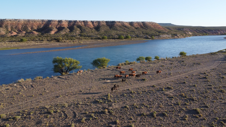 Parte de sus animales están en un campo cerca de Picún Leufú con todos los cuidados garantizados y el seguimiento de los mismos. Los animales caminan libremente y toman agua del Limay, garantizando la responsabilidad en la trazabilidad.
