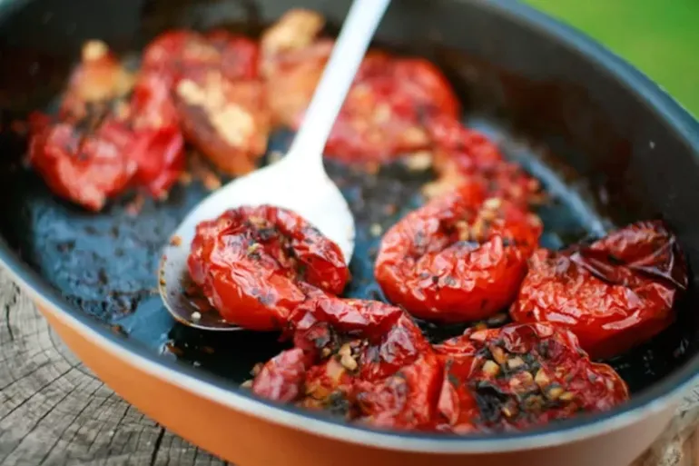 - Cociná a baja temperatura durante 2 horas, hasta que los tomates estén caramelizados y tiernos.