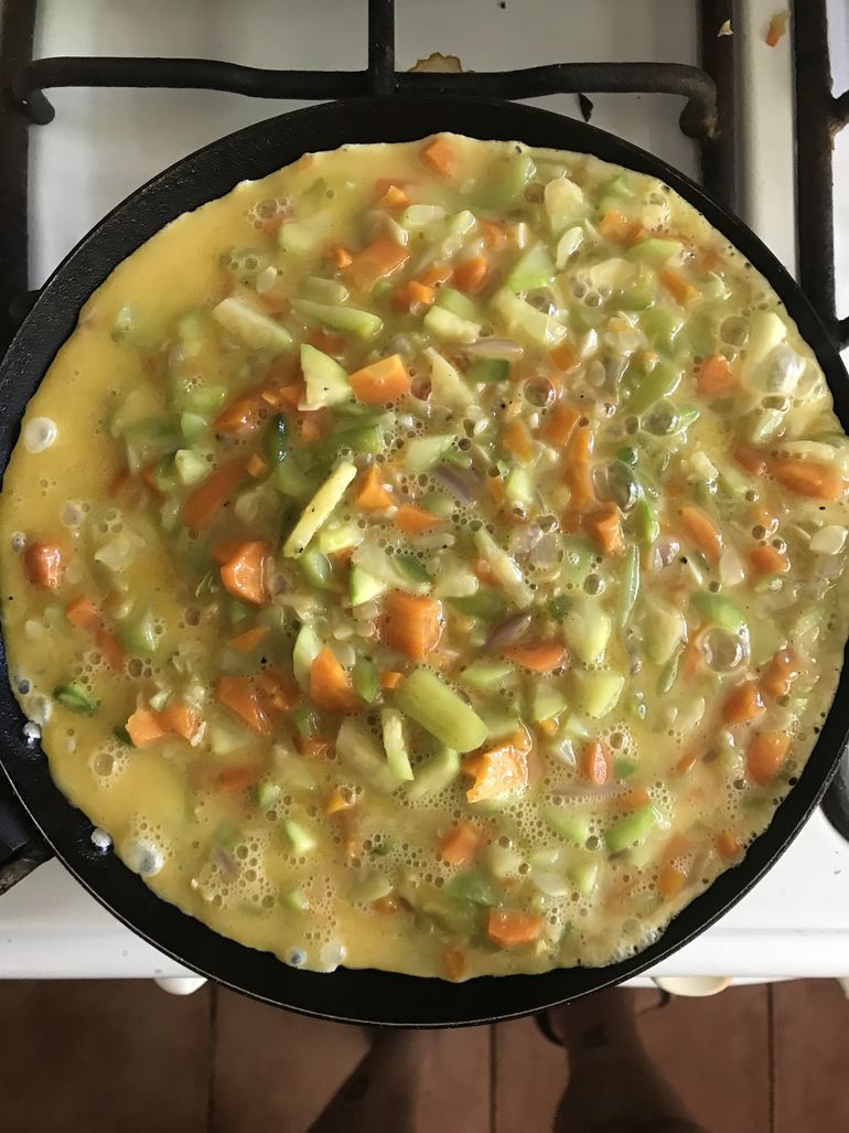 Con un par de zapallitos de tronco, zanahorias, un poquito de cebolla, apenas ajo y dos zucchinis, se puede armar una tortilla fácil, rica y nutritiva.