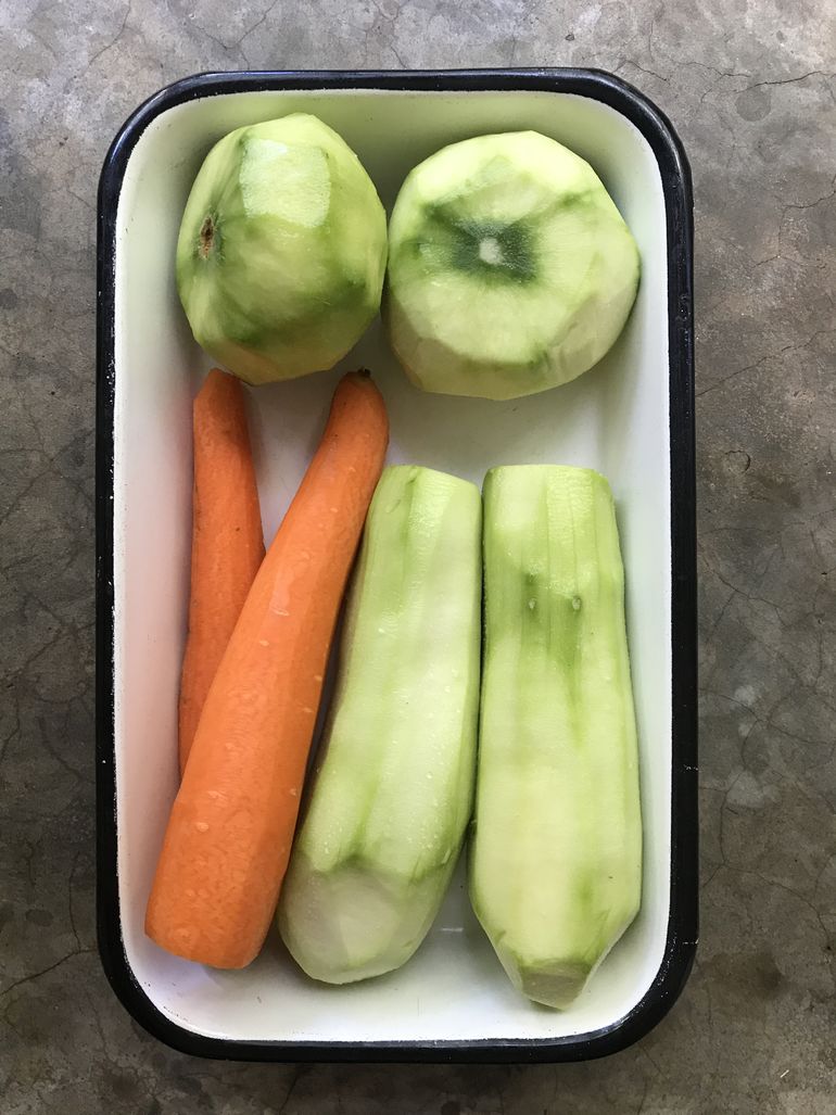 Lavar y pelar los vegetales.